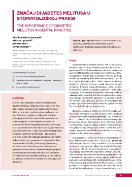 1 Stomatološki fakultet Univerziteta u Beogradu, Beograd, Srbija dijabetesa